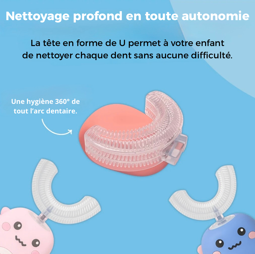 Oui, la forme en U permet de nettoyer toutes les faces dentaires en même temps, ce qui assure un brossage complet, même si l’enfant ne maîtrise pas encore les bons gestes.
